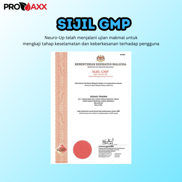 Ya, Neuro-Up menggunakan bahan yang selamat dan telah melalui proses pematuhan standard kualiti. Ia tidak mengandungi bahan berbahaya dan sesuai diambil sebagai sokongan nutrisi harian.